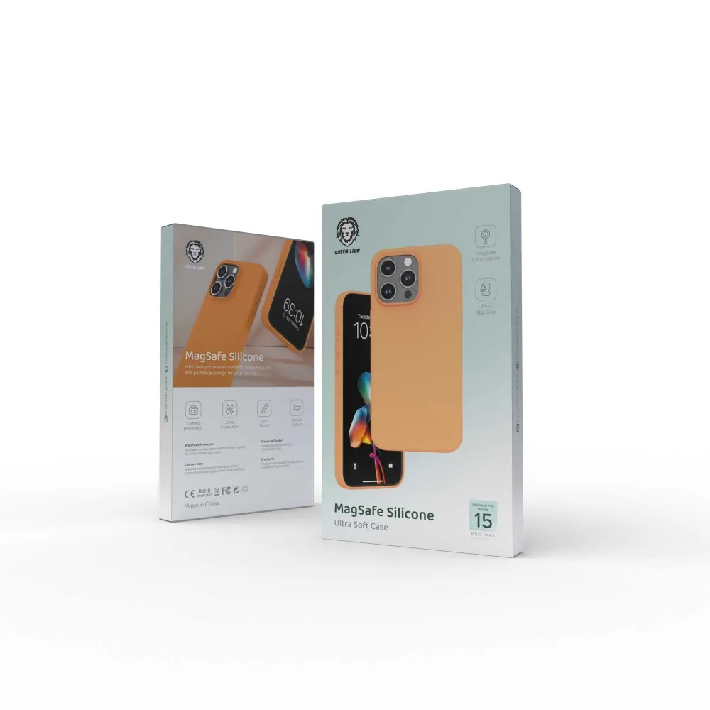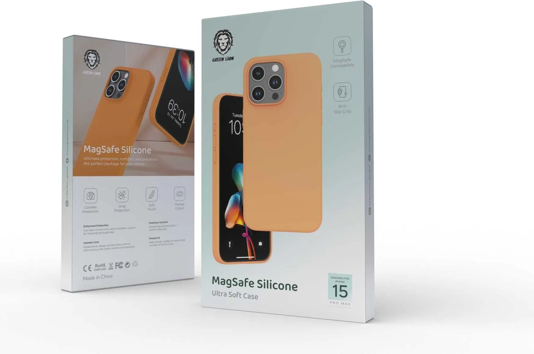 GREEN LION MAGSAFE ULTRAWEICHE SILIKONHÜLLE FÜR IPHONE 15PRO MAX – ORANGE.