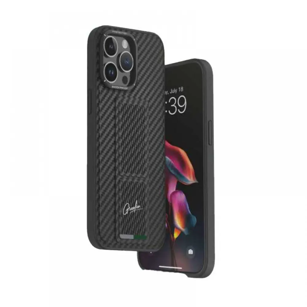 GREEN LION GRIPX-HÜLLE MIT STÄNDER FÜR IPHONE 15 PRO – MATTES CARBON-LEDER.