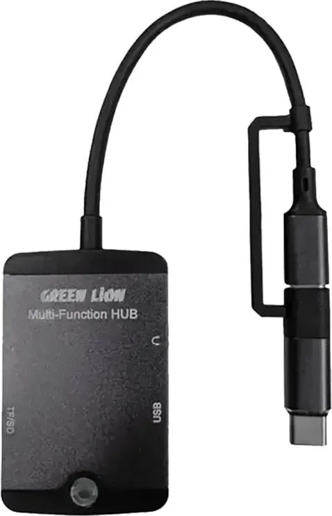 Erleben Sie Konnektivität auf höchstem Niveau mit dem Green Lion 5-in-1-Multifunktions-Hub. Die Type-C-, Lightning-, SD/TF-Kartensteckplätze, Aux- und USB-Anschlüsse dieses Hubs sind alle durchdacht integriert, um eine Vielzahl von Zwecken zu erfüllen und sicherzustellen, dass jedes Gerät eine kompatible Ergänzung hat.