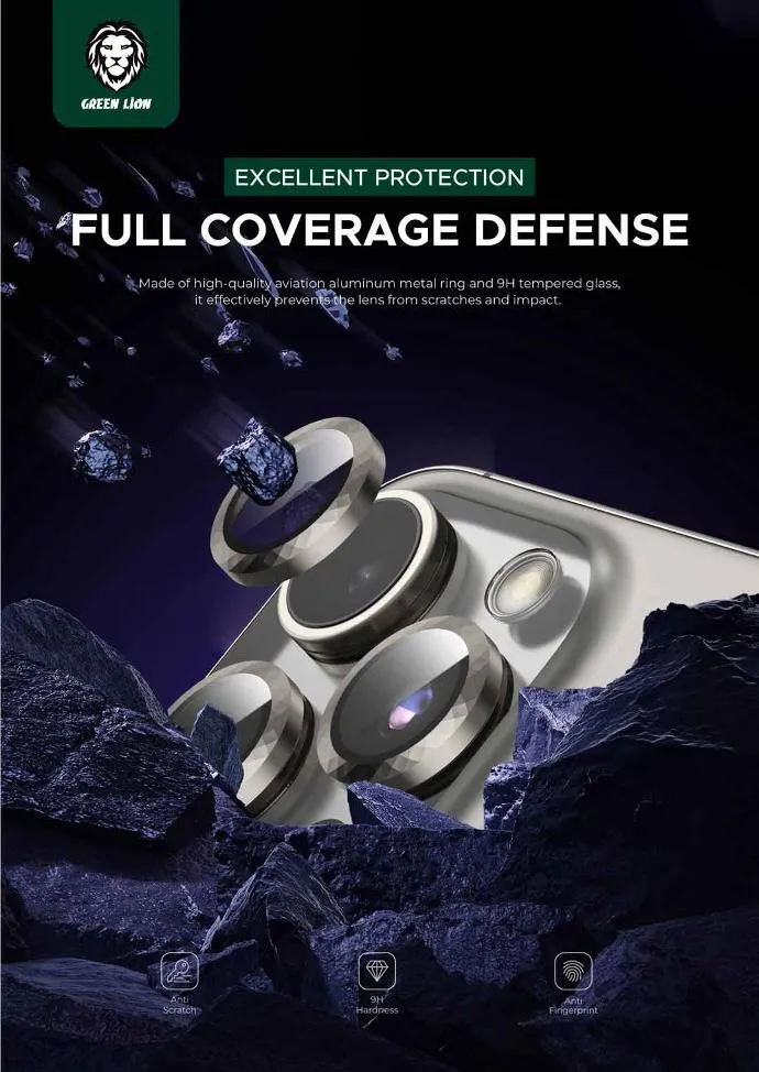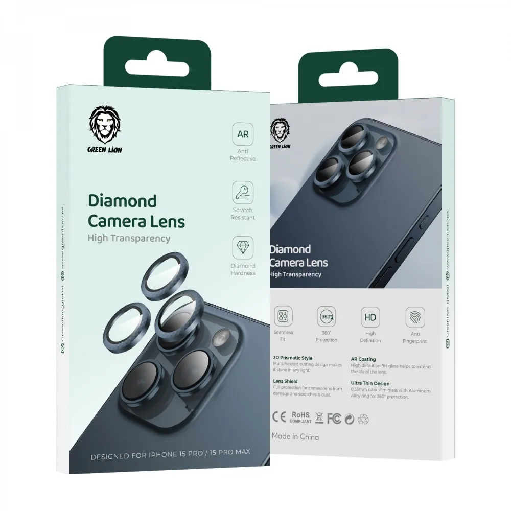 Der Green Lion Diamond Design Camera Lens for iPhone 15 Promax wird aus hochwertigem gehärtetem Glas hergestellt, das für seine aussergewöhnliche Kratzfestigkeit und Widerstandsfähigkeit bekannt ist. Die Diamond Design-Technologie sorgt dafür, dass der Green Lion Diamond Design Camera Lens for iPhone 15 Promax nicht nur funktional ist, sondern Ihrem iPhone auch eine elegante und moderne Ästhetik verleiht. Der Diamant-Rand des Protectors sorgt für eine zusätzliche Schicht an Schutz, die das Kameraobjektiv vor Stössen und Kratzern schützt.