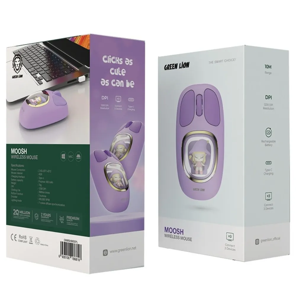 Die Green Lion Moosh Kabellose Maus - Lila ist plattformübergreifend kompatibel: Windows (7–11), macOS, Linux sowie ChromeOS werden ohne weitere Software unterstützt. Der USB‑Dongle erfordert keine Treiber, und Firmware-Updates können bei Bedarf über optionale Tools online eingespielt werden – ohne Aufwand für den Nutzer.
