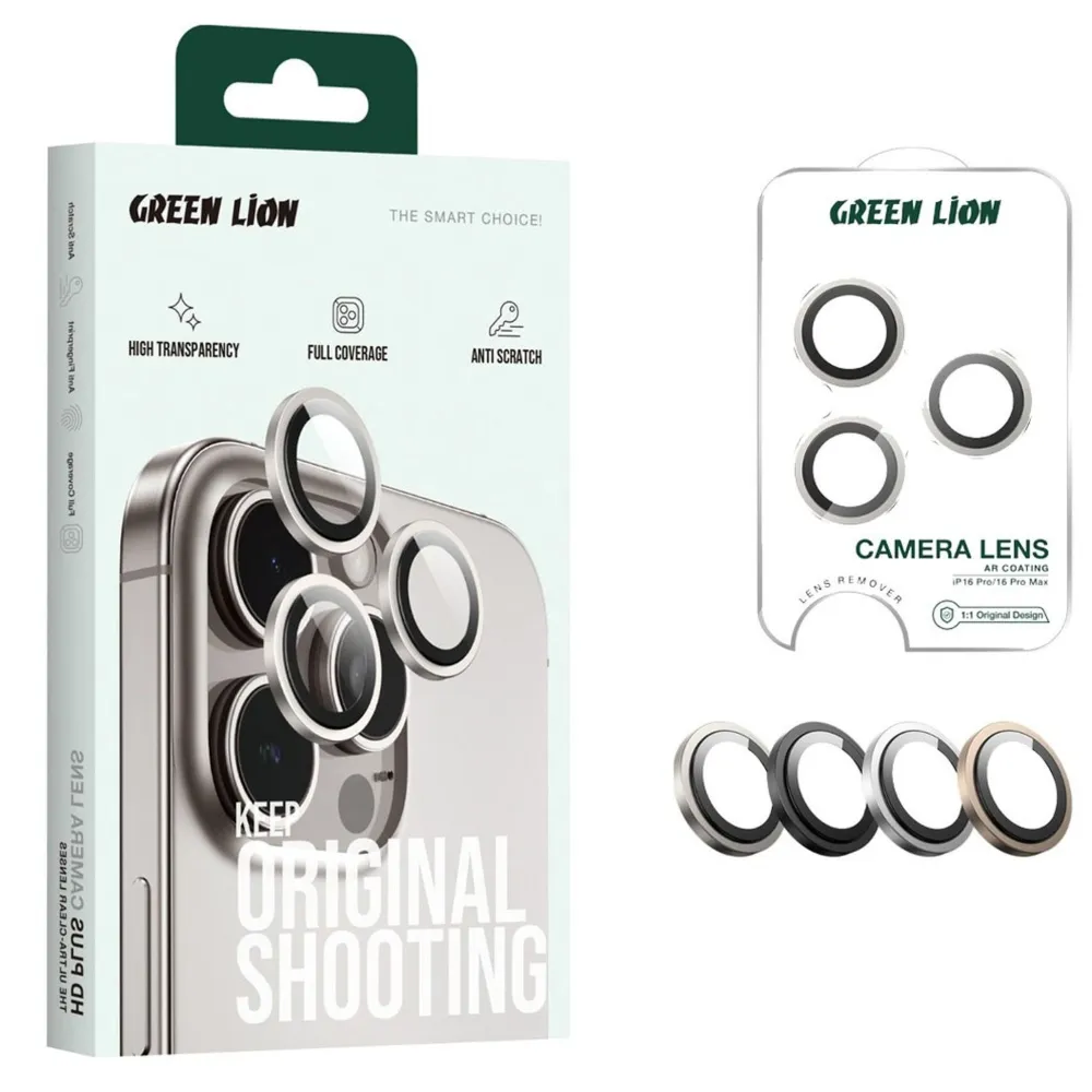 Green Lion HD Plus Kameraobjektiv iPhone 16 Pro / 16 Pro Max - Titanium: Höchste Bildqualität in elegantem Design