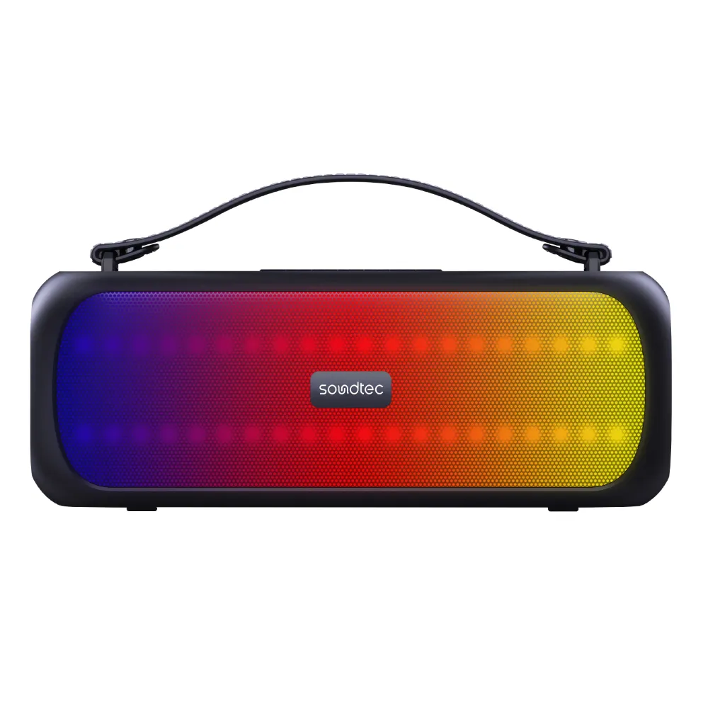 - Integrierte RGB-Beleuchtung: Ein besonderes Highlight ist die im Lautsprecher integrierte RGB-Lichtleiste, die individuell anpassbare Lichtakzente setzt. Ob sanfte Ambientebeleuchtung oder dynamische Lichtshows – die LED-Funktion sorgt für ein visuelles Erlebnis, das perfekt auf die Musik abgestimmt werden kann.