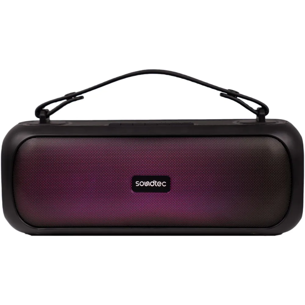 Der Porodo Soul Basic Lautsprecher - Schwarz ist ein vielseitiger, leistungsstarker und eleganter Lautsprecher, der Ihr Hörerlebnis auf ein neues Niveau hebt. Er vereint überragende Klangqualität, eine beeindruckende Akkulaufzeit, robuste Bauweise und moderne, individuell anpassbare RGB-Lichteffekte in einem kompakten, tragbaren Gerät.