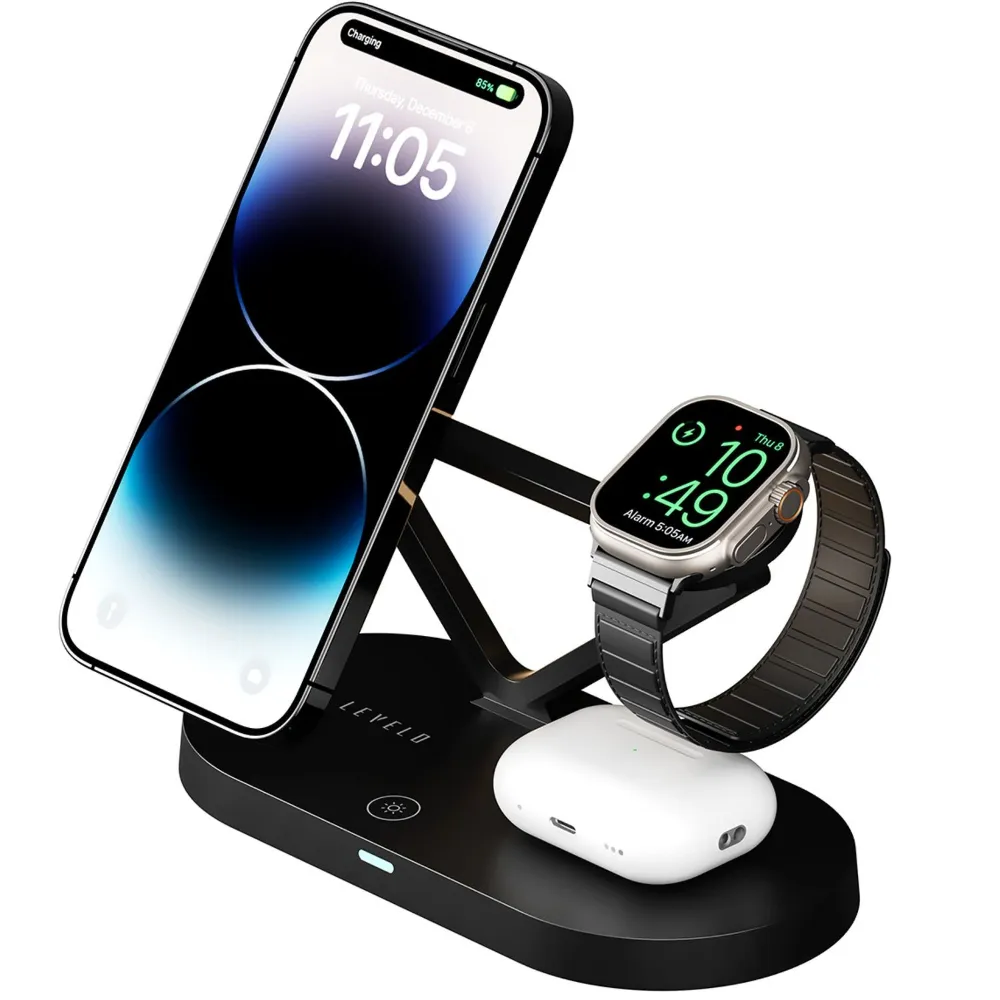 Levelo Premio 5 in 1 Magsafe Kabellose Ladestation – Schwarz