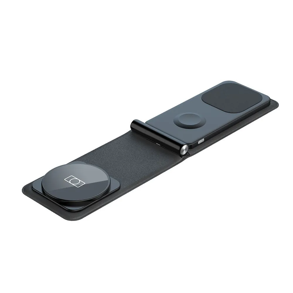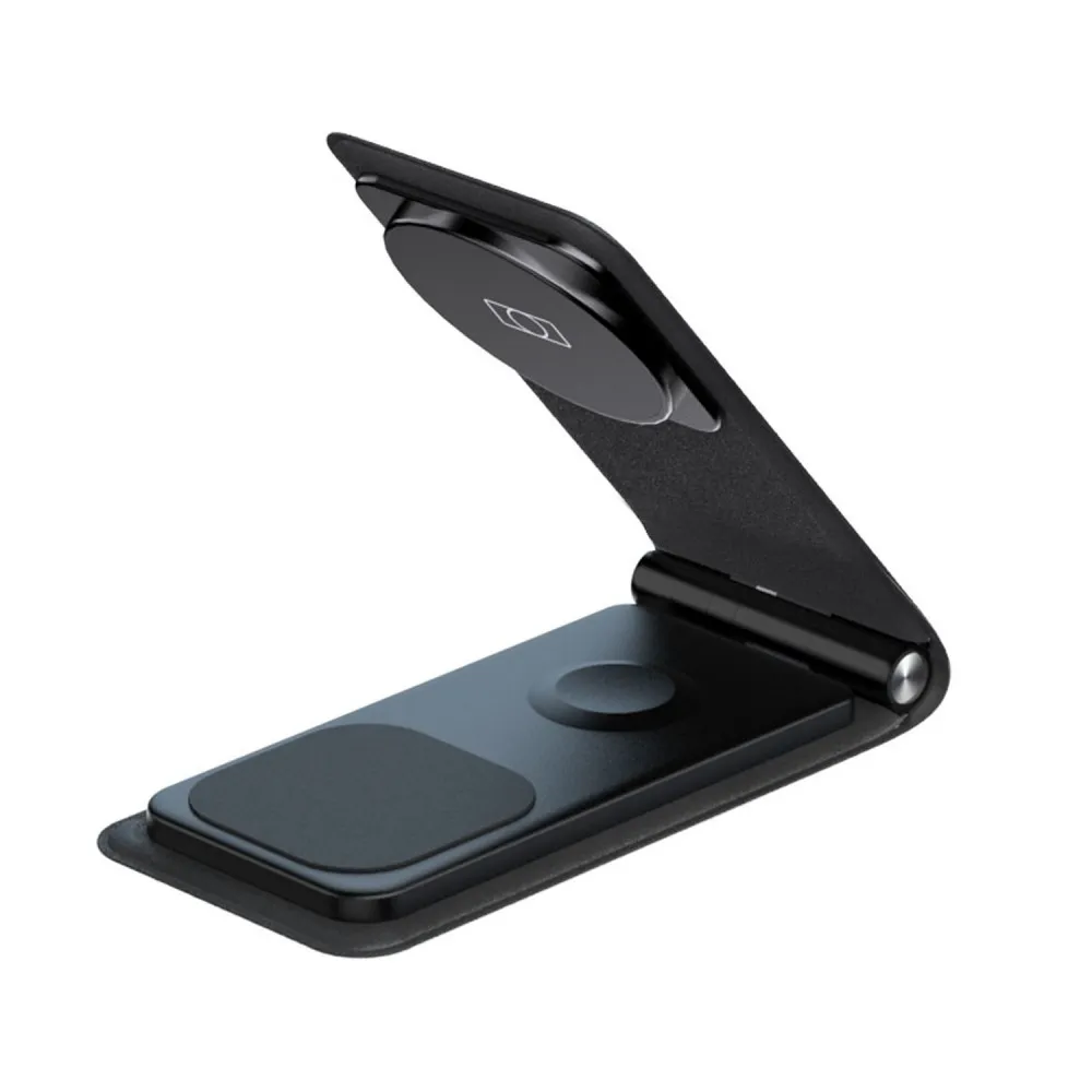 Der Levelo Arch Trio Wireless Charging Stand besticht durch ein minimalistisches und modernes Design, das sich nahtlos in jede Umgebung einfügt. Der Levelo Arch Trio Wireless Charging Stand ist in einem schlichten schwarzen Gehäuse gehalten und nutzt eine elegante Lederoberfläche, die nicht nur optisch ansprechend ist, sondern auch eine angenehme Haptik bietet. Das Design wurde so gewählt, dass es sowohl funktional als auch ästhetisch ansprechend ist, ohne unnötig viel Platz zu beanspruchen. Die kompakte Bauweise ermöglicht es, den Charger auf verschiedenen Oberflächen zu platzieren, ohne viel Raum einzunehmen, und macht ihn ideal für kleine Schreibtische, Nachttische oder das Büro.