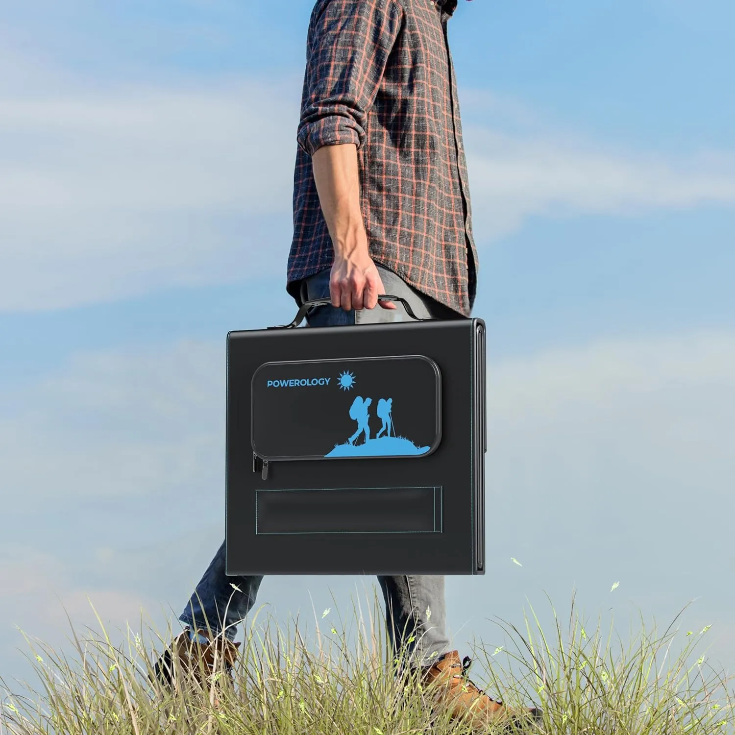 Das Solarpanel ist in einem robusten schwarzen Gehäuse gefertigt, das sowohl widerstandsfähig gegen Witterungseinflüsse als auch leicht zu transportieren ist. Mit seinem kompakten und dennoch stabilen Design eignet sich das Powerology 60W Mono Crystalline Solar Panel perfekt für Outdoor-Aktivitäten wie Camping, Wandern oder Backpacking. Die integrierten Tragegriffe ermöglichen einen einfachen Transport, während die strapazierfähigen Materialien das Panel vor Kratzern, Stössen und anderen Beschädigungen schützen. Das schlanke Profil und die leichte Bauweise machen es einfach, das Solarpanel in Rucksäcken, Fahrzeugen oder sogar an festen Installationen zu befestigen.