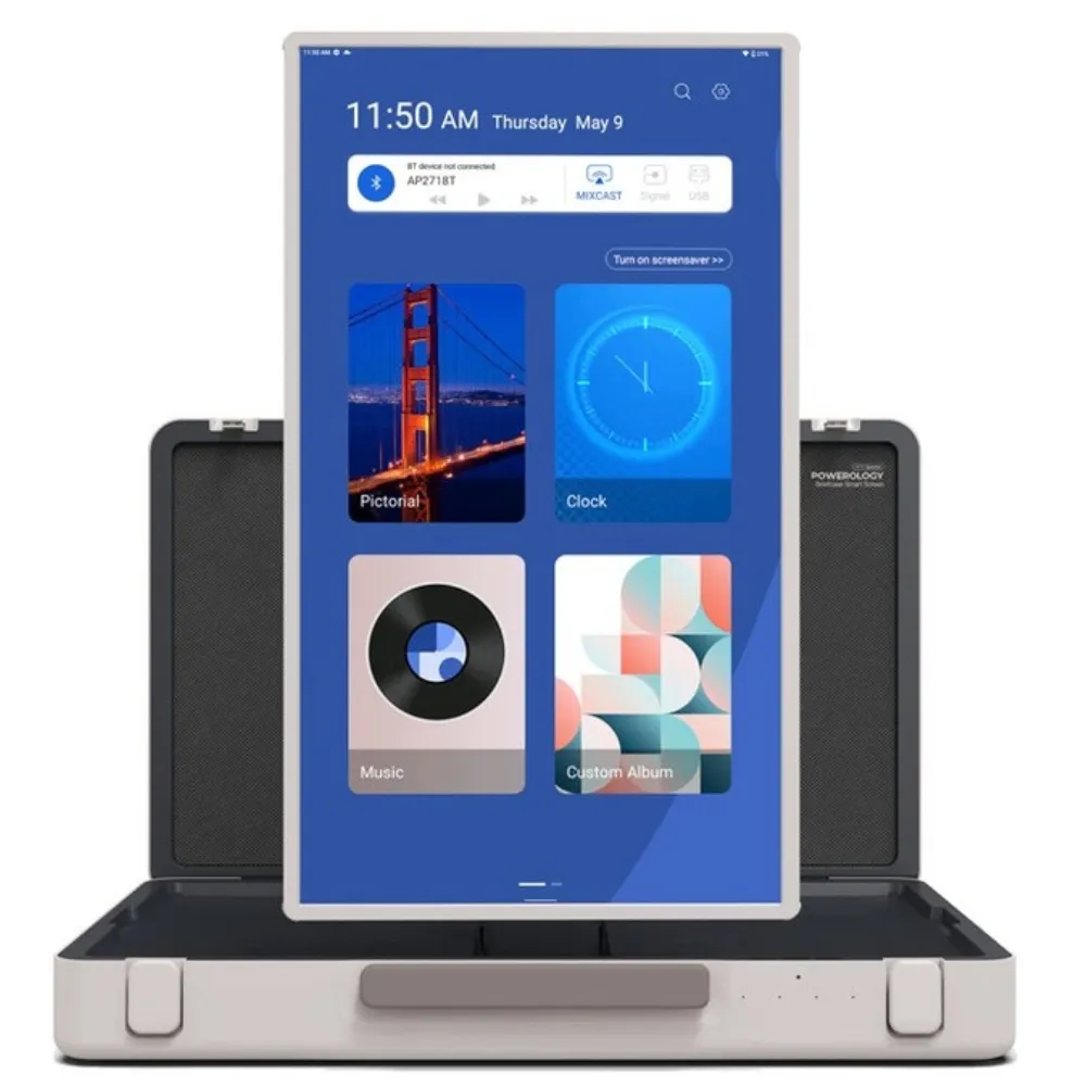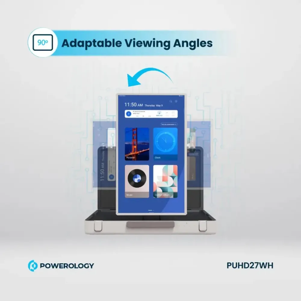 Powerology Tragbares UHD Table Android 27'' - Weiss: Das ultimative mobile 4K-Erlebnis für Arbeit, Gaming und Präsentationen