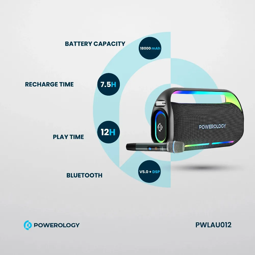 Mit dem Powerology TWS Karaoke Lautsprecher 150W wird jede Party zu einem echten Erlebnis: