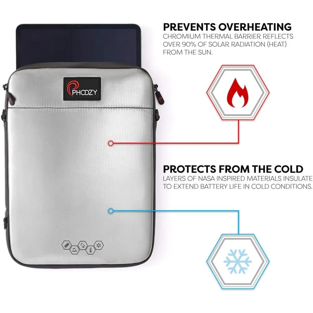 Tablets sind empfindlich, wenn es um extreme Temperaturen geht. In der prallen Sonne kann sich ein Gerät schnell aufheizen, es drosselt die Leistung, und der Akku wird stärker belastet. Bei Kälte sinkt die Akkulaufzeit oft spürbar, und das Tablet kann früher abschalten, obwohl eigentlich noch Ladung vorhanden ist. Die Phoozy iPad Capsule 11 - Iridiumsilber setzt hier auf eine patentierte Chromium Thermal Barrier, eine Schutzschicht, die dabei hilft, Überhitzung zu reduzieren und Kälte besser zu isolieren. So bleibt Dein Tablet länger in einem stabileren Temperaturbereich, besonders praktisch, wenn Du viel unterwegs bist oder Dein Gerät draussen nutzt.