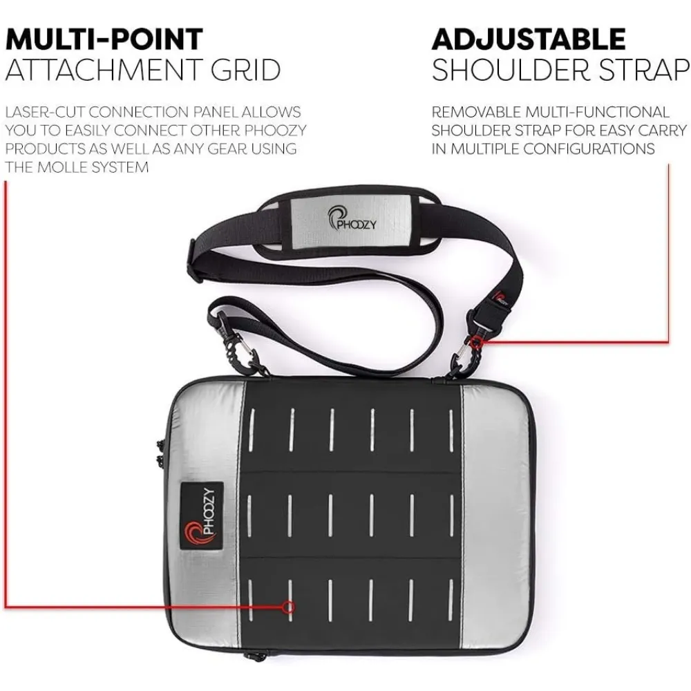 Die Phoozy iPad Capsule 11 - Iridiumsilber ist so konzipiert, dass Du sie flexibel einsetzen kannst. Du kannst sie als Sleeve im Rucksack verwenden, oder als eigene Tasche tragen. Je nach Set kann ein verstellbarer Schultergurt dabei sein, damit Du Dein Tablet bequem über der Schulter oder quer am Körper tragen kannst. Mehrere Befestigungspunkte unterstützen Dich dabei, die Trageweise an Deinen Alltag anzupassen, vertikal oder horizontal, je nachdem was für Dich angenehmer ist.