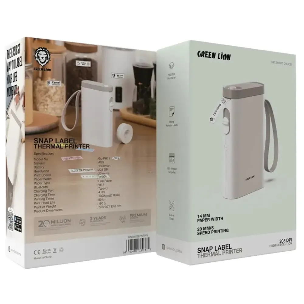 Der Green Lion Snap Label Thermal Printer 14mm ist eine erstklassige Lösung für Unternehmen, die auf schnelle, präzise und kosteneffiziente Kennzeichnungslösungen angewiesen sind. Mit seiner modernen Thermodrucktechnologie, der robusten Bauweise und der vielseitigen Einsatzfähigkeit in Bereichen wie Logistik, Einzelhandel, Büro und Industrie setzt dieses Gerät neue Massstäbe in Sachen Effizienz und Zuverlässigkeit.