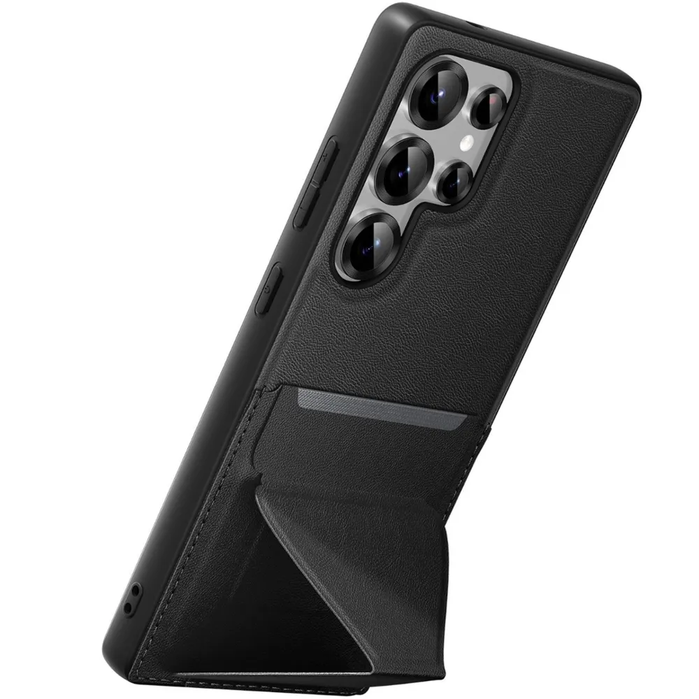Ein besonders praktisches Feature der Green Lion Stand Lederhülle S25 Ultra - Schwarz ist die Stand-Funktion. Du kannst dein Samsung Galaxy S25 Ultra in der Hülle so aufstellen, dass es in einem komfortablen Blickwinkel bleibt – ideal für das Ansehen von Videos, das Surfen im Internet oder das Arbeiten im Landscape-Modus. Diese Funktion sorgt für eine komfortable Nutzung, ohne dass du das Gerät die ganze Zeit in der Hand halten musst.