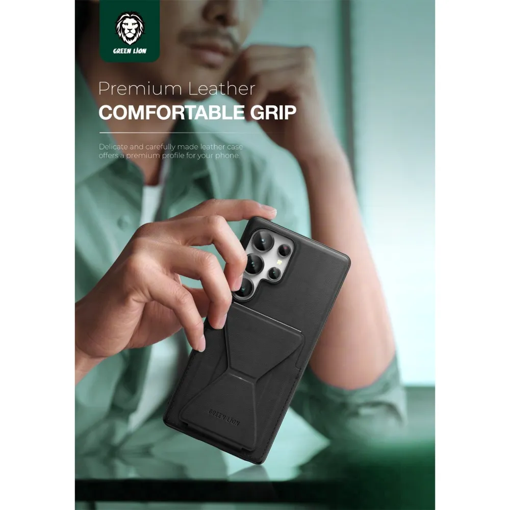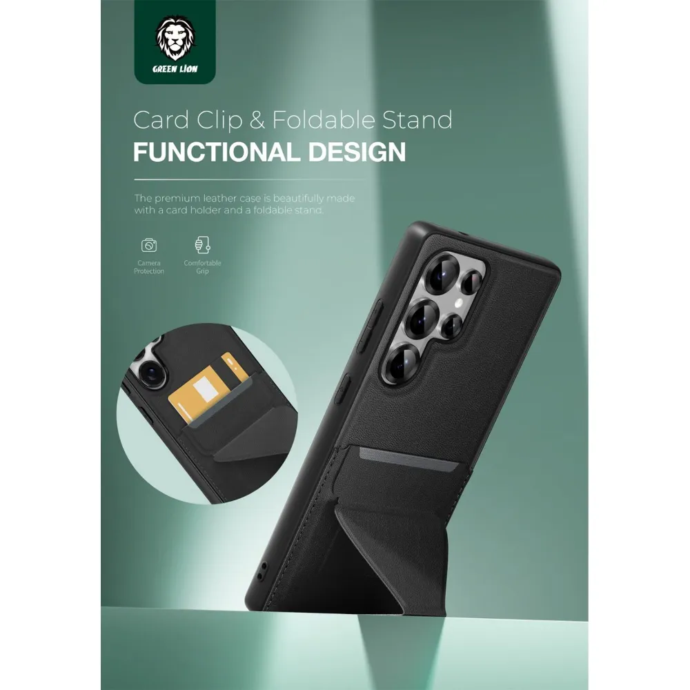 Green Lion Stand Lederhülle S25 Ultra – Schwarz