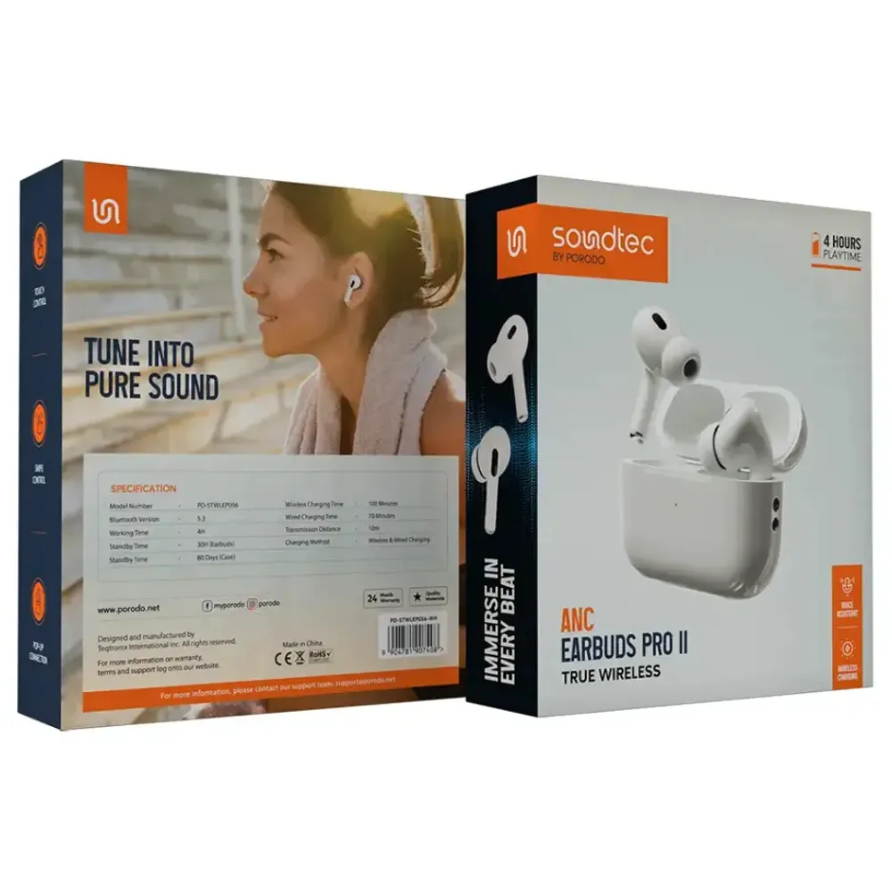 Porodo Soundtec ANC Earbuds Pro 2 True Wireless - Weiss: Ausführliche Produktbeschreibung