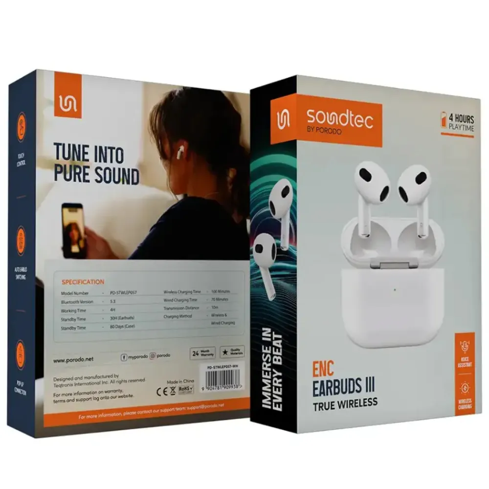 Porodo Soundtec ENC Earbuds 3 True Wireless - Weiss: Ausführliche Produktbeschreibung