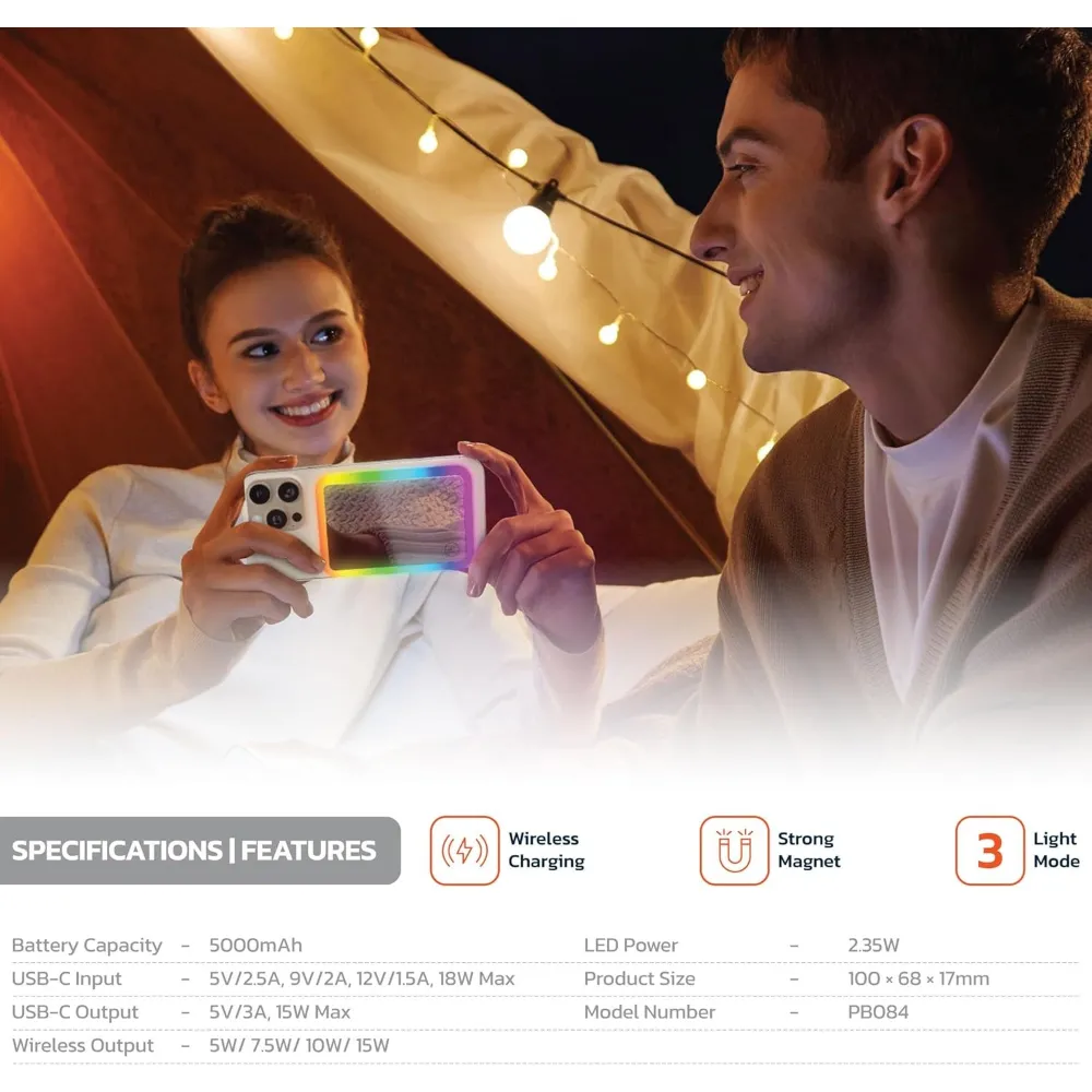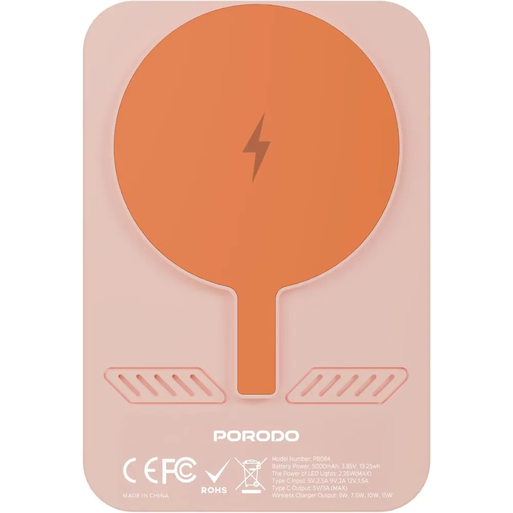 Die integrierte 5000 mAh Powerbank macht den Porodo Magsafe Spiegel – Pink zu einem unverzichtbaren Begleiter: