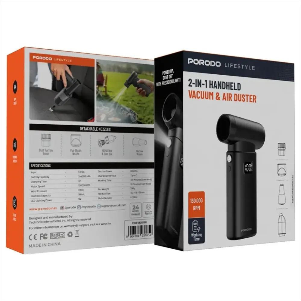 Als vielseitiges Gerät bietet das Porodo 2 In 1 Gebläse + Vakuum 4000mAh * 2 Stück Typ-C - Schwarz eine Kombination von starkem Luftstrom, guter Saugleistung und langer Betriebszeit—ideal für Technikenthusiasten, Heimwerker, Vielreisende oder Automobilpflege.