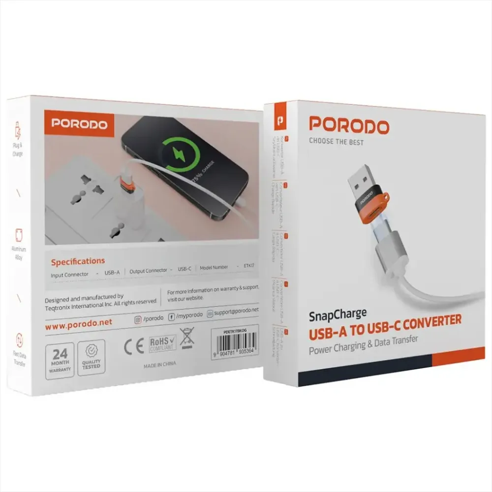 Porodo steht für modernes Zubehör, das durch Design, Qualität und Funktionalität überzeugt. Der Porodo SnapCharge USB-A auf USB-C Adapter ist ein typisches Beispiel dafür: kompakt, zuverlässig und perfekt für den Alltag.