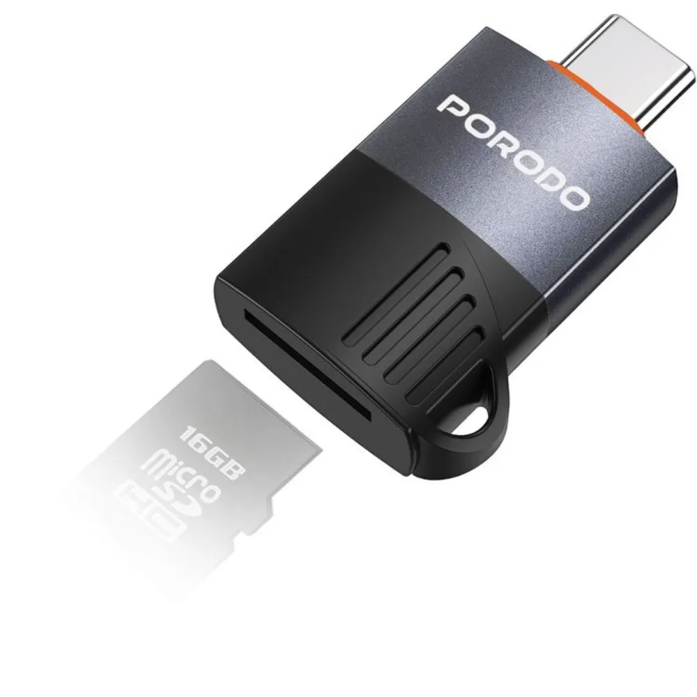 Porodo USB-C OTG TF Kartenleser – Schwarz