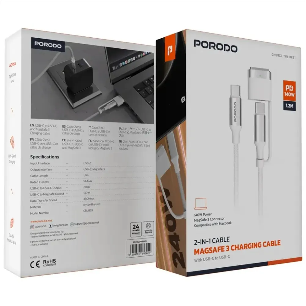 Porodo steht für durchdachtes Zubehör, das modernes Design mit hoher Funktionalität verbindet. Mit dem Porodo 2 in 1 MagSafe 3 Ladekabel USB-C auf USB-C - Weiss entscheidest Du Dich für ein Produkt, das langlebig, flexibel und zukunftssicher ist.
