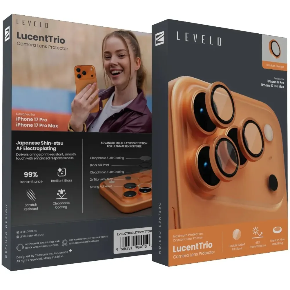 Levelo LucentTrio Kameraschutz Apple iPhone 17 Pro / 17 Pro Max Orange