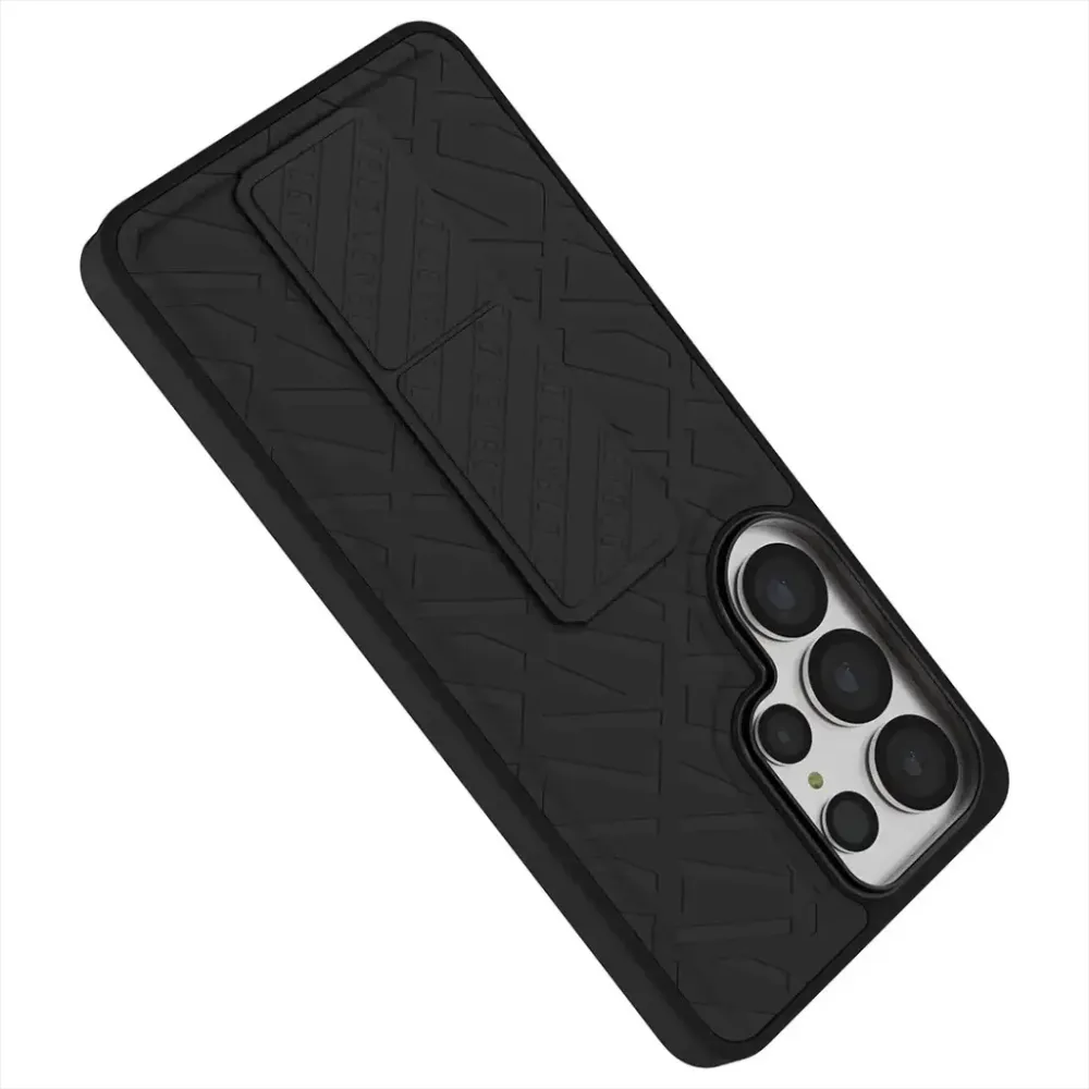 Levelo Morphix Cuero Gripstand Hülle Samsung S26 Ultra - Schwarz: Funktionaler Schutz mit integriertem Stand