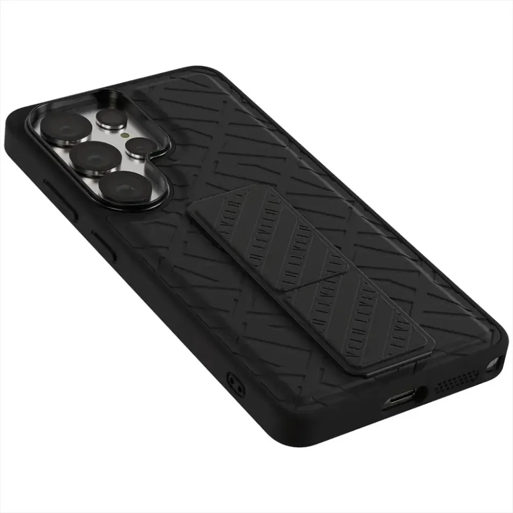 Die strukturierte Oberfläche der Levelo Morphix Cuero Gripstand Hülle Samsung S26 Ultra - Schwarz sorgt für einen festen Griff. Dadurch wird das Risiko reduziert, dass dein Smartphone versehentlich aus der Hand rutscht.