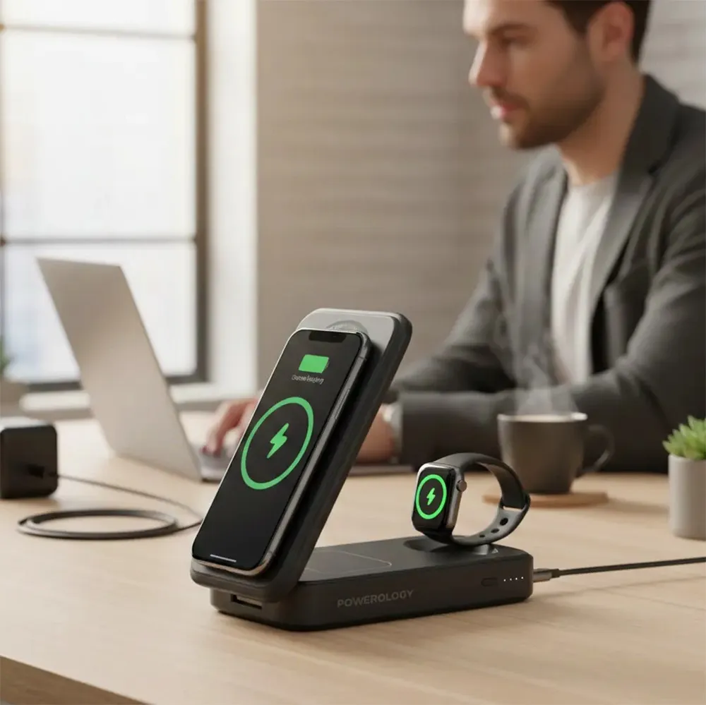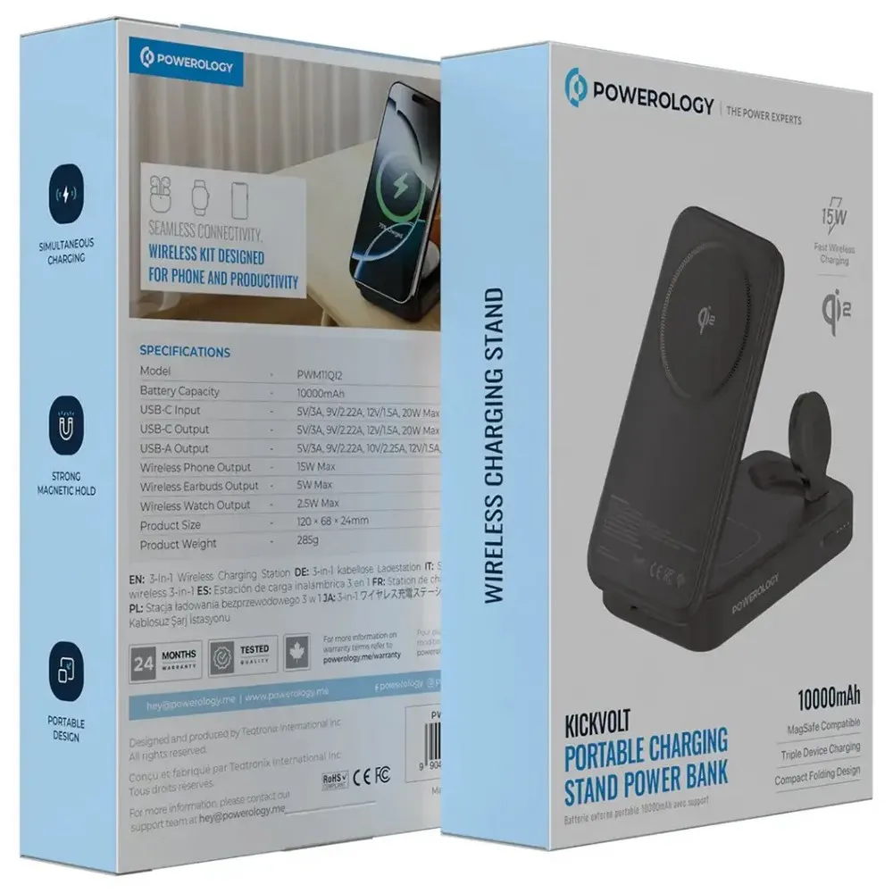 Powerlogy KickVolt Power Bank mit Lade-Ständer – Kompakt & Reisetauglich, 10000 mAh