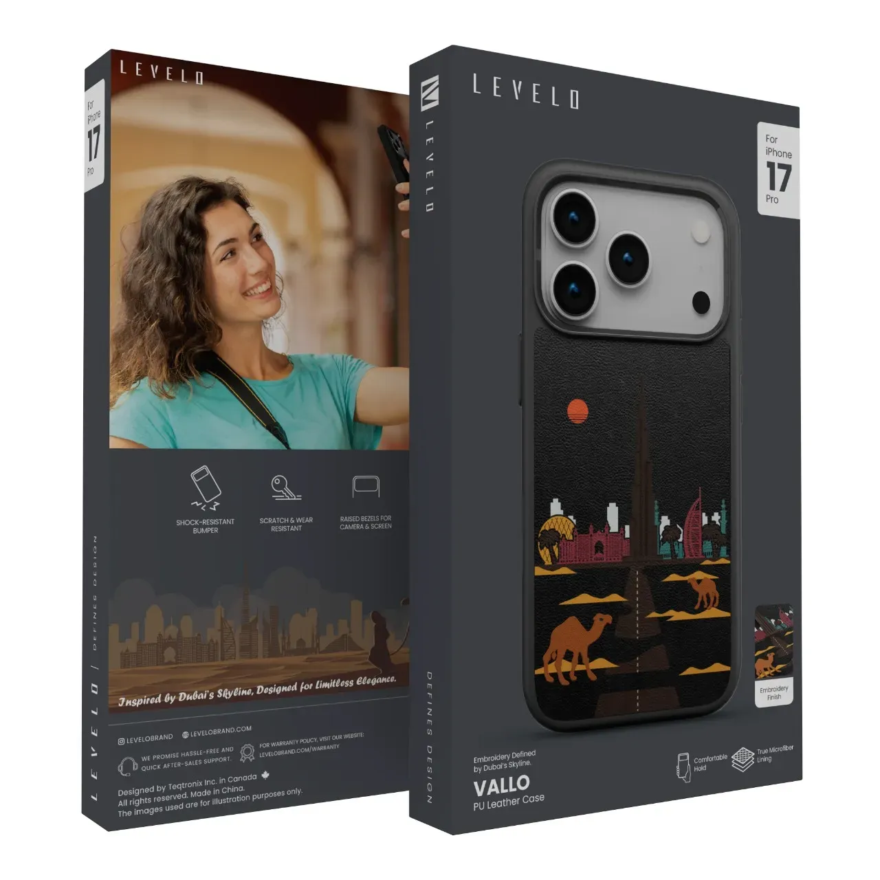 Levelo Vallo Robuste Hülle – Stickerei Dubai Apple iPhone 17 Pro