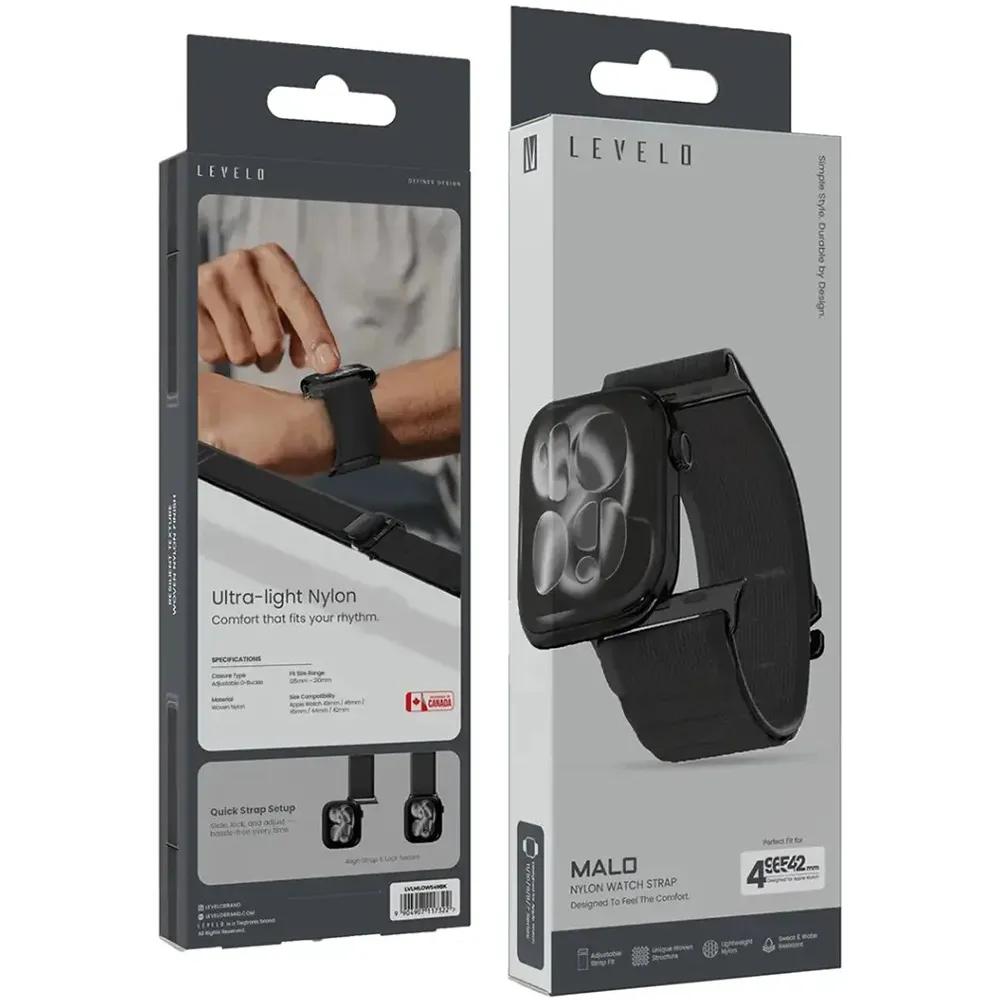 Levelo ist bekannt für hochwertiges Zubehör für moderne Geräte und überzeugt durch langlebige Materialien sowie präzise Verarbeitung. Auch das Levelo Malo Nylon Watch Armband Apple Watch 49mm - Schwarz erfüllt diese hohen Qualitätsstandards.