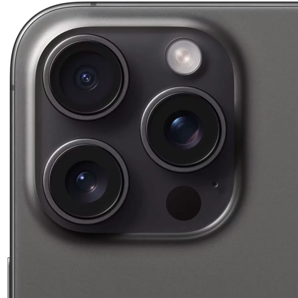 Das Pro Kamerasystem bietet eine 48 MP Hauptkamera, die durch eine fortschrittliche Photonic Engine unterstuezt wird, um Details und Farben in jedem Licht optimal einzufangen. Ein exklusives Merkmal beim Refurbished Apple iPhone 15 Pro Max ist das Teleobjektiv mit einem 5 fachen optischen Zoom. Dieses wird durch ein Tetraprisma Design ermöglicht, welches das Licht vierfach reflektiert, um eine groessere Brennweite in einem kompakten Gehaeuse zu realisieren. Zusaetzlich deckt die 12 MP Ultraweitwinkel Kamera ein Sichtfeld von 120 Grad ab und ermoeglicht beeindruckende Makroaufnahmen von kleinsten Objekten.