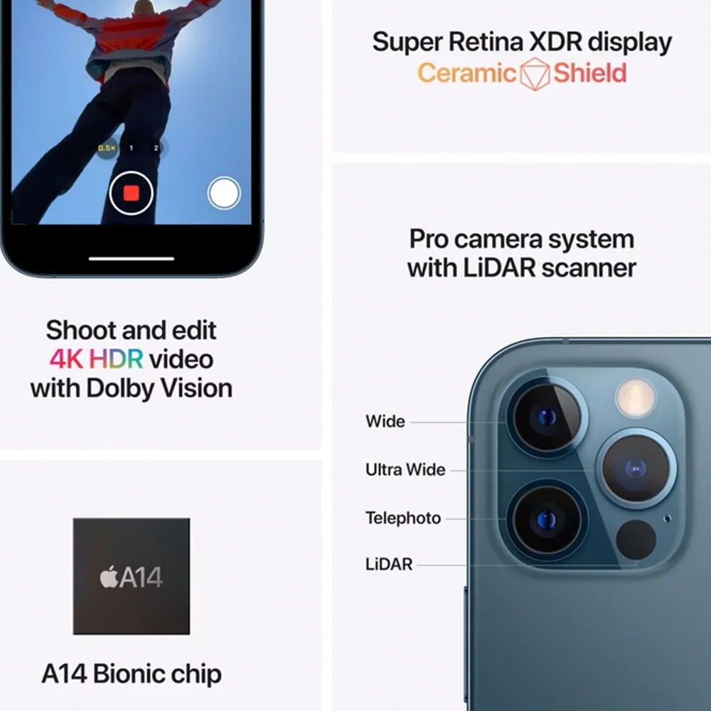 Angetrieben wird das iPhone 12 Pro vom A14 Bionic Chip, der zum Zeitpunkt seiner Veröffentlichung der schnellste Smartphone-Chip der Welt war. Er verfügt über eine 6-Kern-CPU und eine 4-Kern-GPU, die selbst anspruchsvolle Aufgaben wie die Bearbeitung von 4K-Videos oder grafikintensive Spiele mühelos bewältigen. Die 16-Core Neural Engine sorgt für eine enorme Geschwindigkeit bei Aufgaben des maschinellen Lernens, was sich in einer schnelleren Bildverarbeitung und einer intelligenteren Siri bemerkbar macht. Trotz dieser enormen Leistung arbeitet der Chip äusserst effizient, um die Batterielaufzeit zu maximieren.