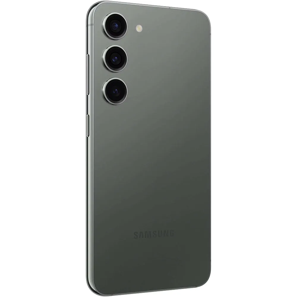Das Design des Refurbished Samsung Galaxy S23 besticht durch seine schlichte Eleganz und eine hochwertige Materialwahl. Der Rahmen besteht aus Armor Aluminum, das einen hervorragenden Schutz gegen Verbiegen und Stürze bietet. Vorder- und Rückseite sind durch Corning Gorilla Glass Victus 2 geschützt, welches einen hohen Anteil an recyceltem Glas enthält und gleichzeitig extrem widerstandsfähig gegen Kratzer ist. Das matte Finish in Green verleiht dem Gerät eine natürliche, edle Optik, die weniger anfällig für Fingerabdrücke ist. Zudem ist das Gehäuse nach IP68 zertifiziert, was bedeutet, dass es Staub und Wasser (bis zu 1,5 Meter Tiefe für 30 Minuten) standhält.